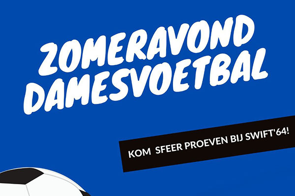 Zomeravond Damesvoetbal op donderdag 9 juni. Kom sfeer proeven bij Swift '64. Aanvang: 19:45 uur Sportpark Swift '64
